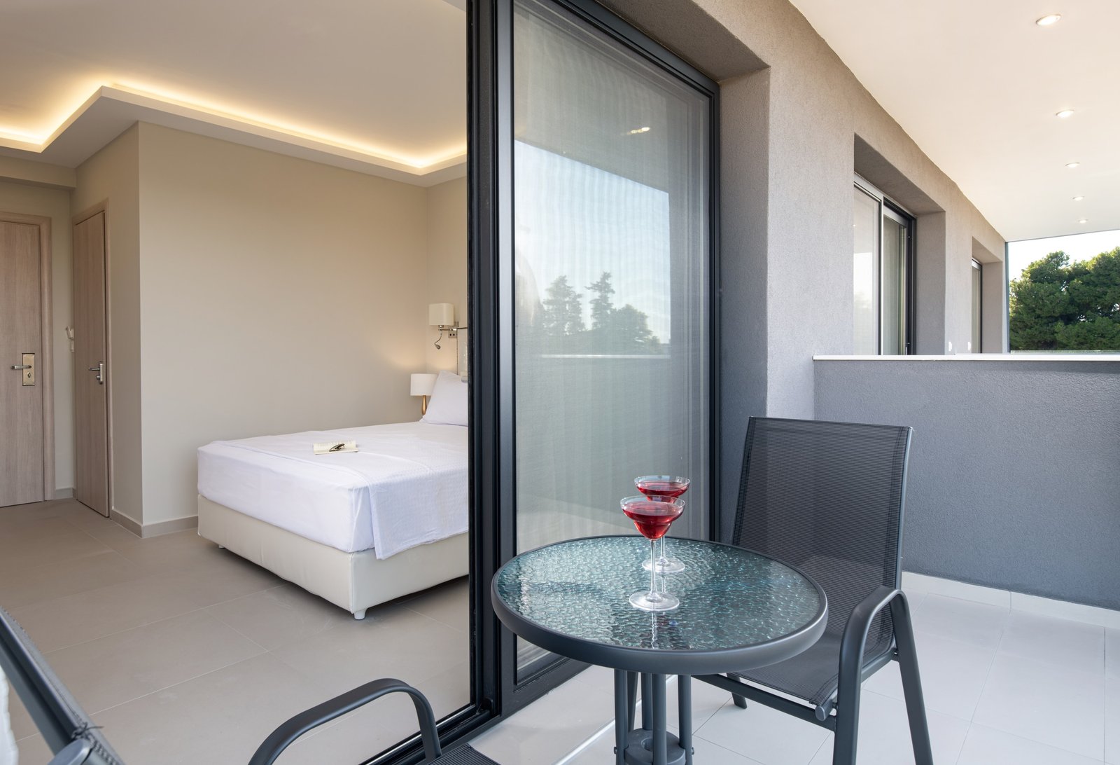 Όλα τα δωμάτια είναι δίκλινα μη καπνιζόντων και περιλαμβάνουν υπέρδιπλο κρεβάτι με κατάλευκα βαμβακερά λευκά είδη, δωρεάν Wi-Fi, κλιματισμό, mini bar, δορυφορική τηλεόραση smart, φούρνο μικροκυμάτων, στεγνωτήριο μαλλιών, ντούζ, ηχομόνωση, πυροσβεστήρες, έπιπλα εξωτερικού χώρου, μεγάλα ευρύχωρα μπαλκόνια με υπέροχη θέα, απολύμανση και καθάρισμα με ατμοκαθαριστή σε κάθε αλλαγή πελάτη και πολύ μεγάλα ηχομονωτικά κουφώματα. Παιδικά παιχνίδια και κούνιες (εφόσον ζητηθούν).